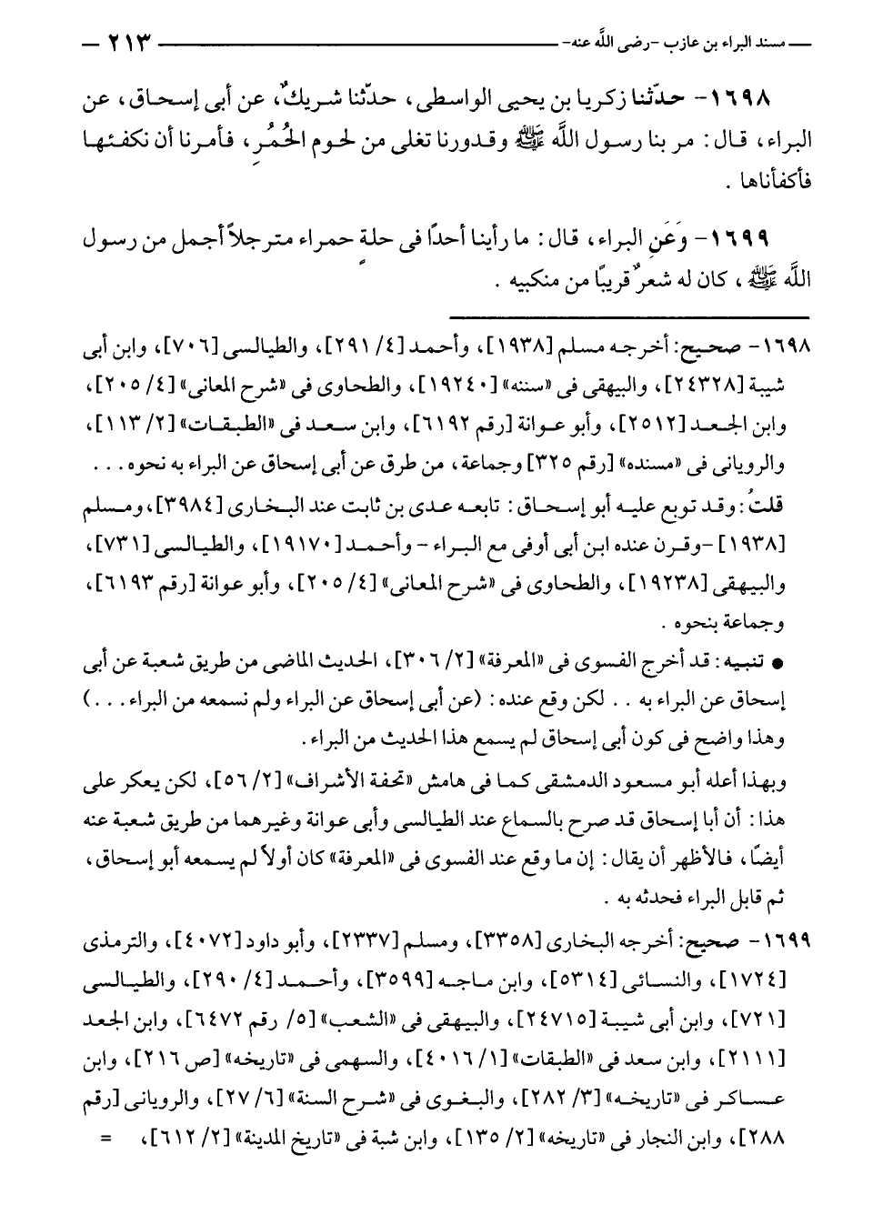 ١٦٩٨ - صحيح: أخرجه مسلم [١٩٣٨]، وأحمد [٤/ ٢٩١]، والطيالسى [٧٠٦]، وابن أبى شيبة [٢٤٣٢٨]، والبيهقى في "سننه" [١٩٢٤٠]، والطحاوى في "شرح المعانى" [٤/ ٢٠٥]، وابن الجعد [٢٥١٢]، وأبو عوانة [رقم ٦١٩٢]، وابن سعد في "الطبقات" [٢/ ١١٣]، والرويانى في "مسنده" [رقم ٣٢٥] وجماعة، من طرق عن أبى إسحاق عن البراء به نحوه ...