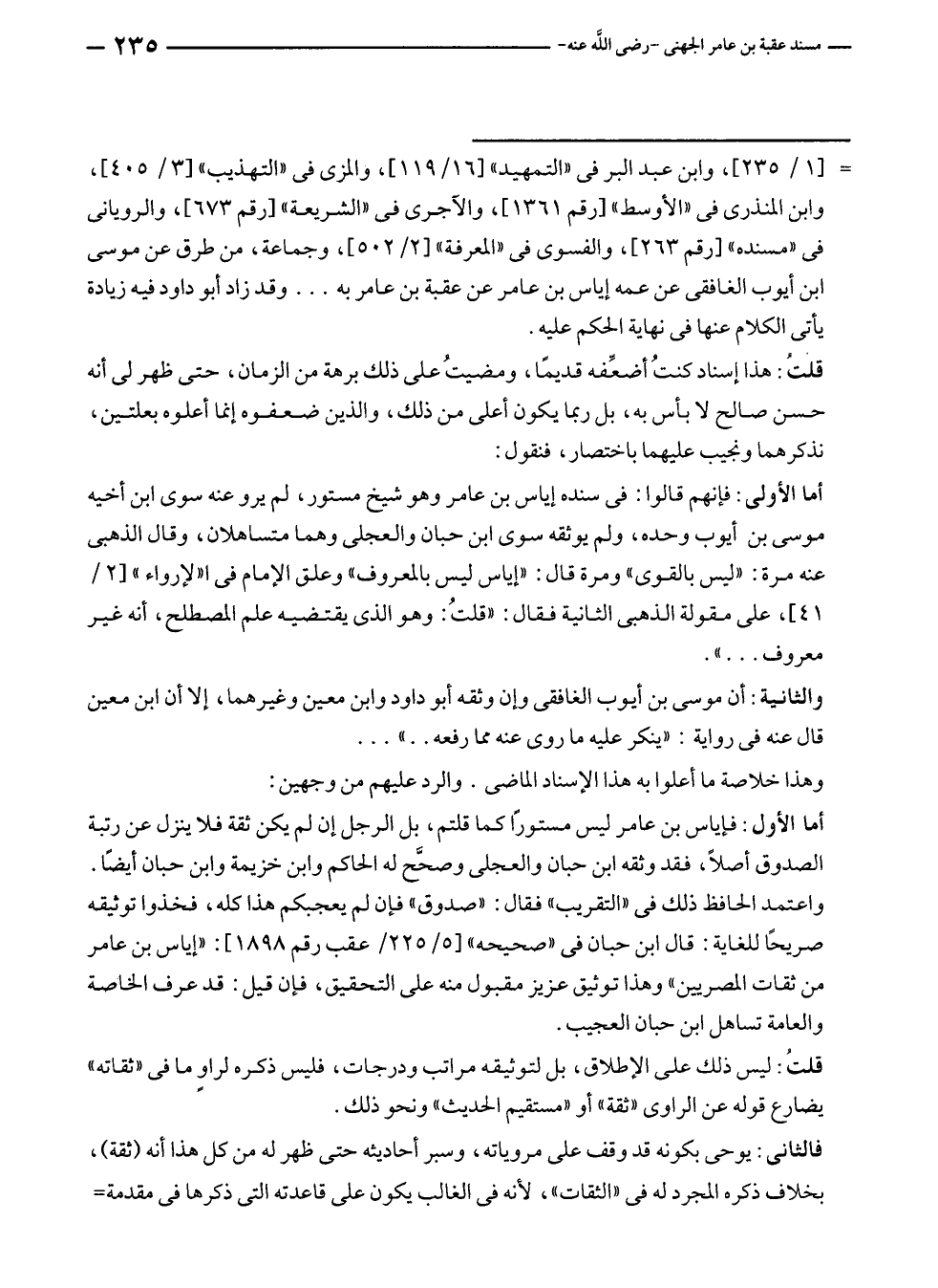 = [١/ ٢٣٥]، وابن عبد البر في "التمهيد" [١٦/ ١١٩]، والمزى في "التهذيب" [٣/ ٤٠٥]، وابن المنذرى في "الأوسط" [رقم ١٣٦١]، والآجرى في "الشريعة" [رقم ٦٧٣]، والرويانى في "مسنده" [رقم ٢٦٣]، والفسوى في "المعرفة" [٢/ ٥٠٢]، وجماعة، من طرق عن موسى بن أيوب الغافقى عن عمه إياس بن عامر عن عقبة بن عامر به ... وقد زاد أبو داود فيه زيادة يأتى الكلام عنها في نهاية الحكم عليه.