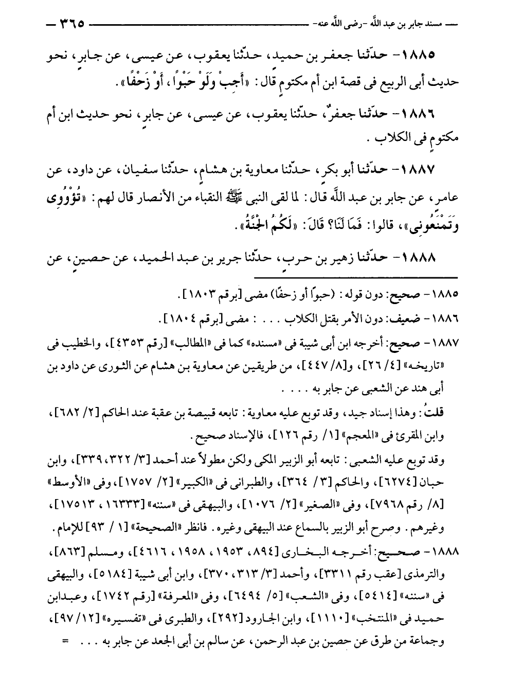 ١٨٨٥ - حدّثنا جعفر بن حميد، حدّثنا يعقوب، عن عيسى، عن جابرٍ، نحو حديث أبى الربيع في قصة ابن أم مكتومٍ قال: "أَجِبْ وَلَوْ حَبْوًا، أَوْ زَحْفًا".