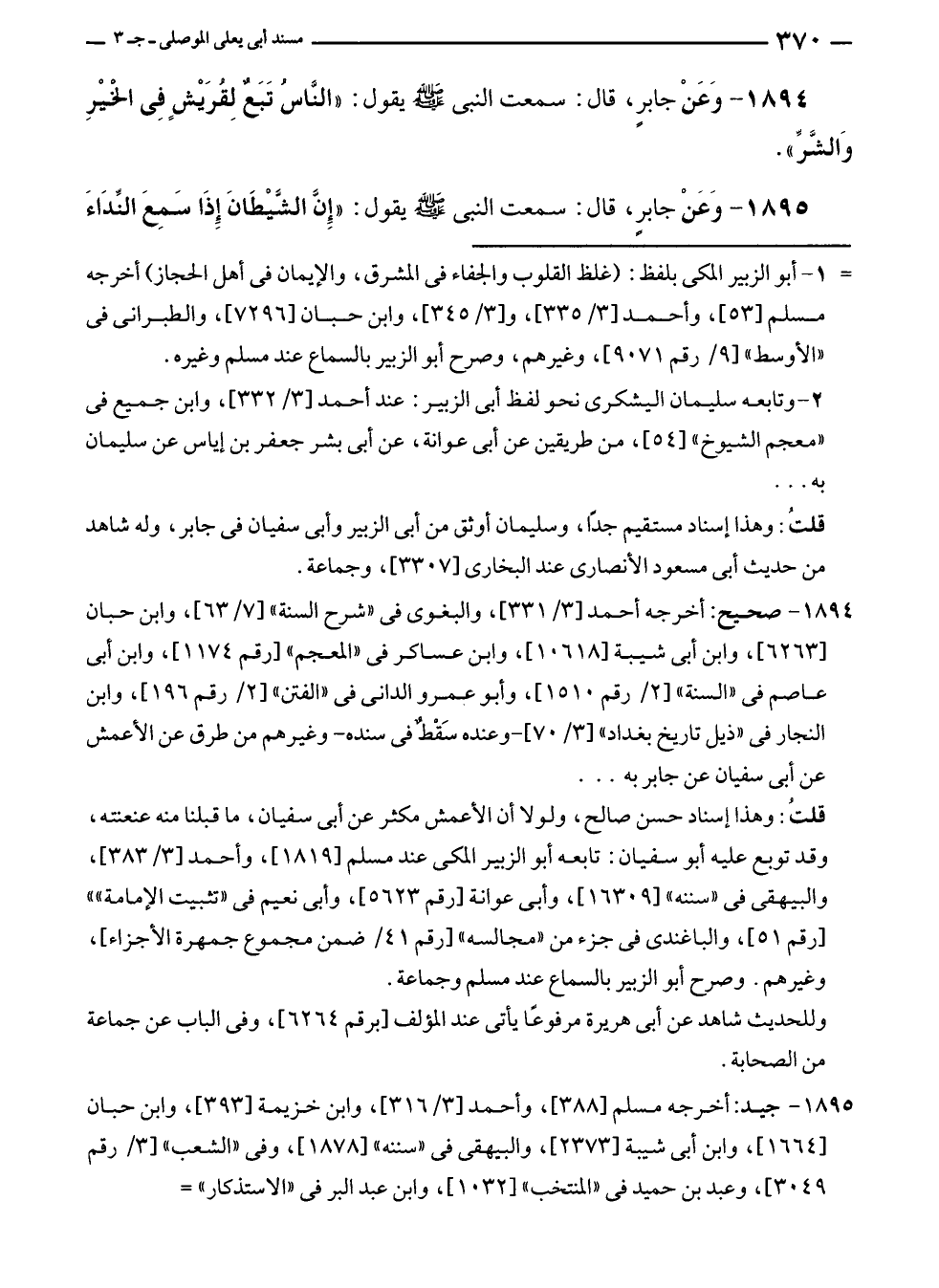 ١٨٩٤ - صحيح: أخرجه أحمد [٣/ ٣٣١]، والبغوى في "شرح السنة" [٧/ ٦٣]، وابن حبان [٦٢٦٣] وابن أبى شيبة [١٠٦١٨]، وابن عساكر في "المعجم" [رقم ١١١٧٤] وابن أبى عاصم في "السنة" [٢/ رقم ١٥١٠]، وأبو عمرو الدانى في "الفتن" [٢/ رقم ١٩٦]، وابن النجار في "ذيل تاريخ بغداد" [٣/ ٧٠]- وعنده سَقْطٌ في سنده - وغيرهم من طرق عن الأعمش عن أبى سفيان عن جابر به ...