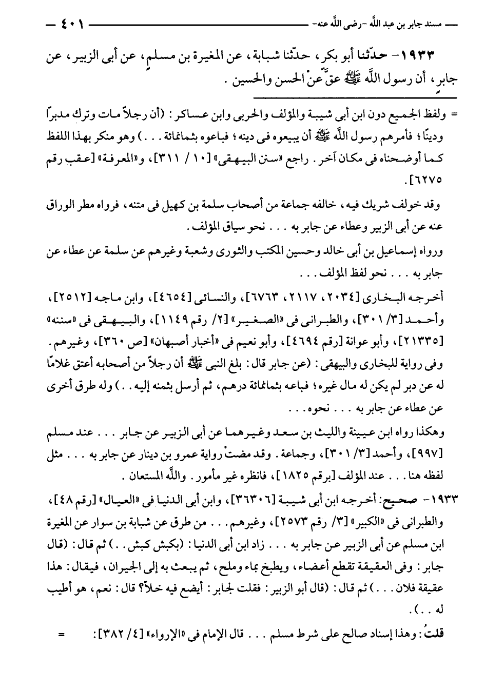 ١٩٣٣ - حَدَّثَنَا أبو بكرٍ، حَدَّثَنَا شبابة، عن المغيرة بن مسلمٍ، عن أبى الزُّبَير، عن جابرٍ، أن رسول الله - صلى الله عليه وسلم - عقَّ عن الحسن والحسين.