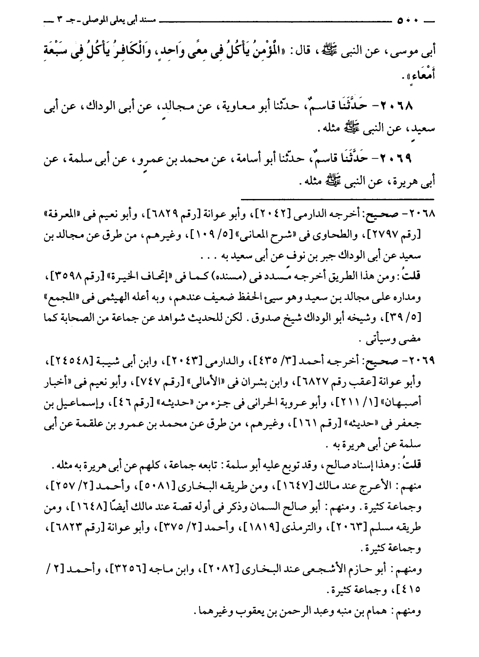 ٢٠٦٨ - حَدَّثَنَا قاسمٌ، حدّثنا أبو معاوية، عن مجالدٍ، عن أبى الوداك، عن أبى سعيد، عن النبي - صلى الله عليه وسلم - مثله.