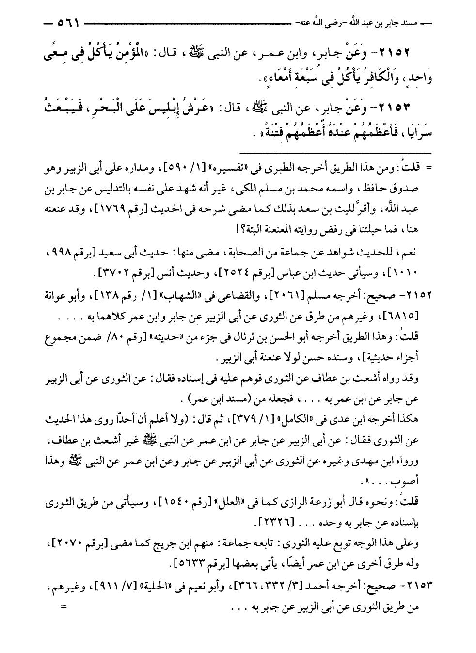٢١٥٣ - صحيح: أخرجه أحمد [٣/ ٣٣٢، ٣٦٦]، وأبو نعيم في "الحلية" [٧/ ٩١١]، وغيرهم، من طريق الثورى عن أبى الزبير عن جابر به ... =