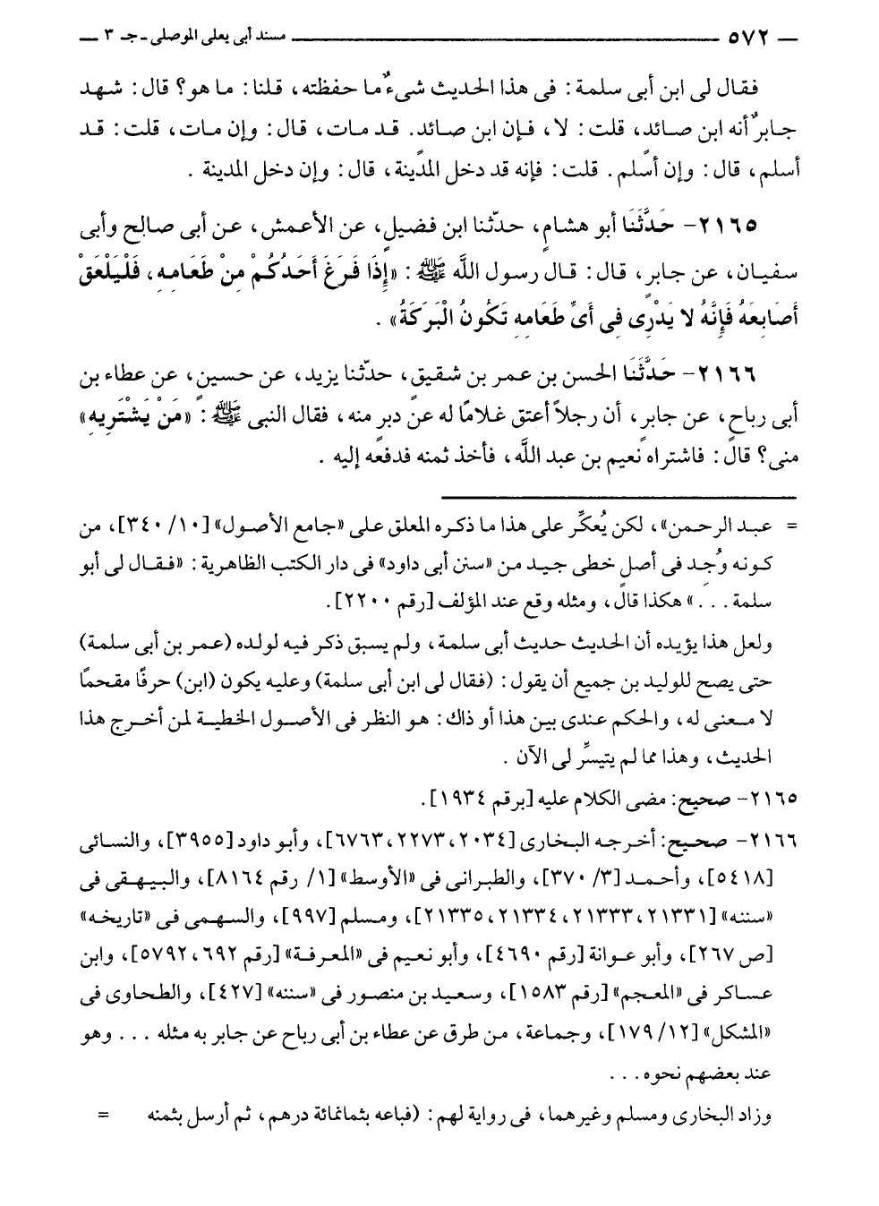 ٢١٦٦ - صحيح: أخرجه البخارى [٢٠٣٤، ٢٢٧٣، ٦٧٦٣]، وأبو داود [٣٩٥٥]، والنسائى [٥٤١٨]، وأحمد [٣/ ٣٧٠]، والطبرانى في "الأوسط" [١/ رقم ٨١٦٤]، والبيهقى في "سننه" [٢١٣٣١، ٢١٣٣٣، ٢١٣٣٤، ٢١٣٣٥]، ومسلم [٩٩٧]، والسهمى في "تاريخه" [ص ٢٦٧]، وأبو عوانة [رقم ٤٦٩٥]، وأبو نعيم في "المعرفة"، [رقم ٦٩٢، ٥٧٩٢]، وابن عساكر في "المعجم" [رقم ١٥٨٣]، وسعيد بن منصور في "سننه" [٤٢٧]، والطحاوى في "المشكل" [١٢/ ١٧٩]، وجماعة، من طرق عن عطاء بن أبى رباح عن جابر به مثله ... وهو عند بعضهم نحوه ...
