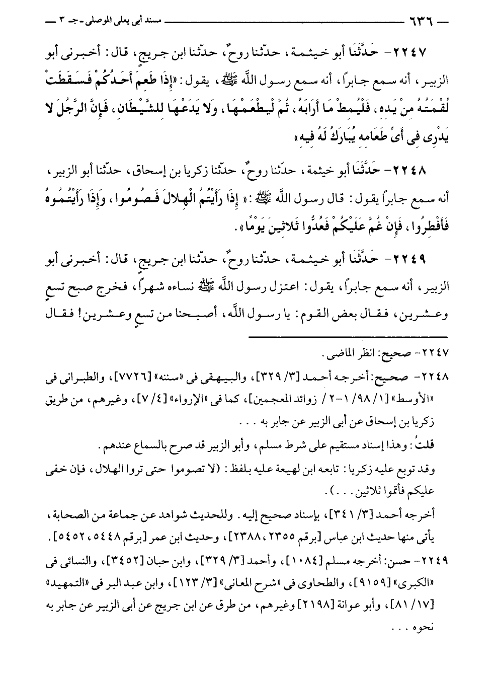 ٢٢٤٩ - حسن: أخرجه مسلم [١٠٨٤]، وأحمد [٣/ ٣٢٩]، وابن حبان [٣٤٥٢]، والنسائى في "الكبرى" [٩١٥٩]، والطحاوى في "شرح المعانى" [٣/ ١٢٣]، وابن عبد البر في "التمهيد" [١٧/ ٨١]، وأبو عوانة [٢١٩٨] وغيرهم، من طرق عن ابن جريج عن أبى الزبير عن جابر به نحوه ...