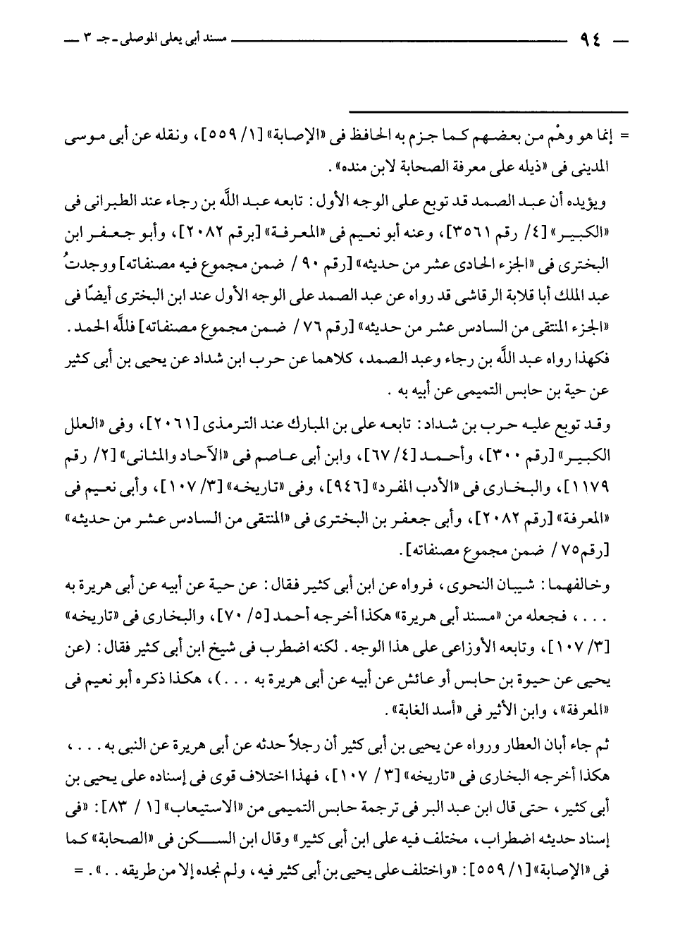 ثم جاء أبان العطار ورواه عن يحيى بن أبى كثير أن رجلًا حدثه عن أبى هريرة عن النبي به ... ، هكذا أخرجه البخارى في "تاريخه" [٣/ ١٠٧]، فهذا اختلاف قوى في إسناده على يحيى بن أبى كثير، حتى قال ابن عبد البر في ترجمة حابس التميمى من "الاستيعاب" [١/ ٨٣]: "في إسناد حديثه اضطراب، مختلف فيه على ابن أبى كثير" وقال ابن السكن في "الصحابة" كما في "الإصابة" [١/ ٥٥٩]: "واختلف على يحيى بن أبى كثير فيه، ولم نجده إلا من طريقه .. ".=