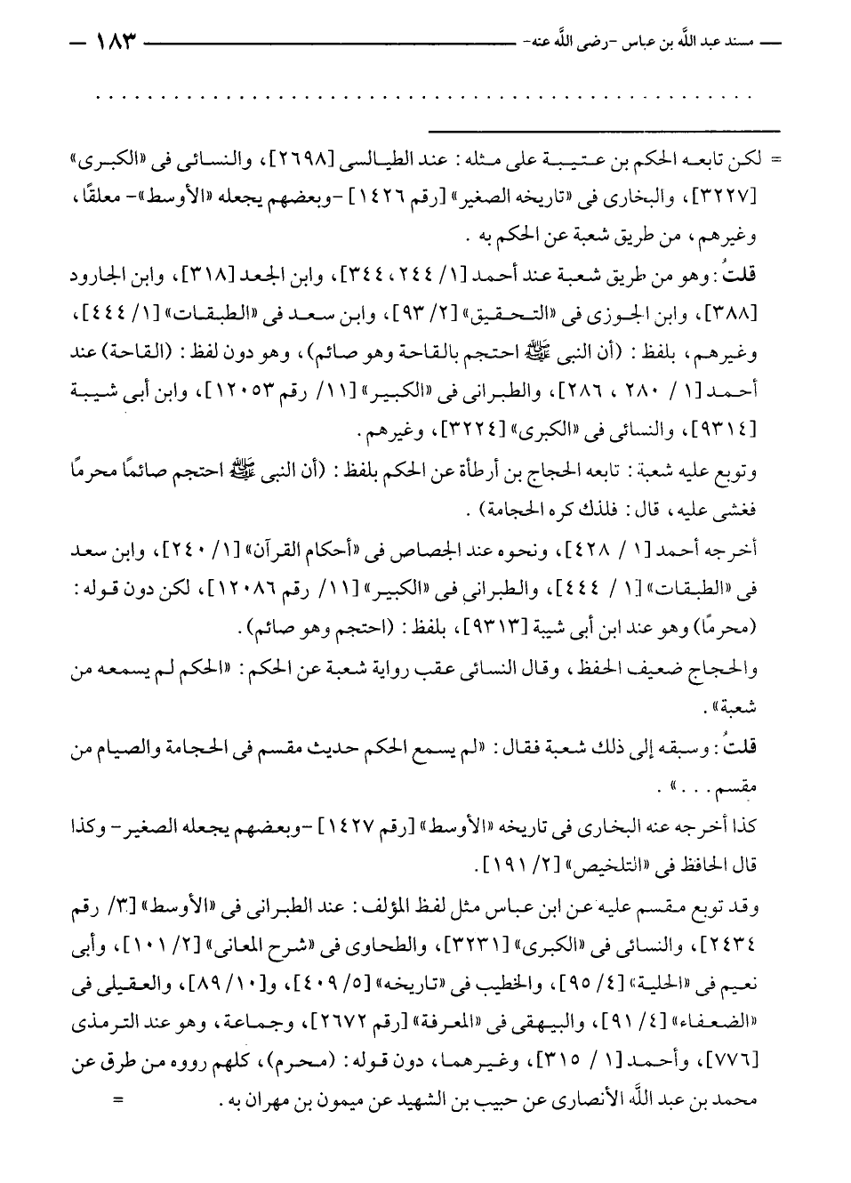 قلتُ: وهو من طريق شعبة عند أحمد [١/ ٢٤٤، ٣٤٤]، وابن الجعد [٣١٨]، وابن الجارود [٣٨٨]، وابن الجوزي في "التحقيق" [٢/ ٩٣]، وابن سعد في "الطبقات" [١/ ٤٤٤]، وغيرهم، بلفظ: (أن النبي - صلى الله عليه وسلم - احتجم بالقاحة وهو صائم)، وهو دون لفظ: (القاحة) عند أحمد [١/ ٢٨٠، ٢٨٦]، والطبراني في "الكبير" [١١/ رقم ١٢٠٥٣]، وابن أبي شيبة [٩٣١٤]، والنسائي في "الكبرى" [٣٢٢٤]، وغيرهم.