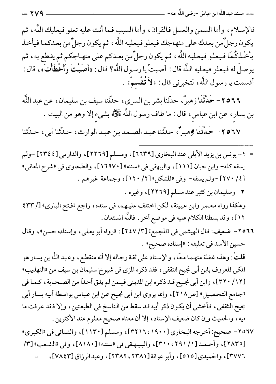 ٢٥٦٦ - حَدَّثَنَا زهيرٌ، حدّثنا بشر بن السرى، حدّثنا سيف بن سليمان، عن عبد الله بن يسارٍ، عن ابن عباسٍ، قال: ما طاف رسول الله - صلى الله عليه وسلم - بشئٍ إلا وهو من البيت.