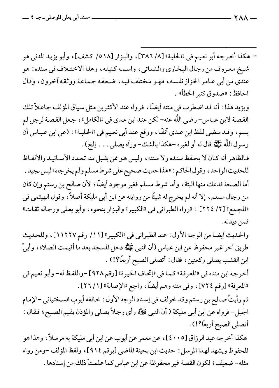 أما الصحة فدعك منها البتة، وأما شرط مسلم فغير موجود أيضًا؛ لأن صالح بن رستم وإن كان من رجال مسلم، إلا أنه لم يخرج له شيئًا من روايته عن ابن أبى مليكة أصلًا، وقول الهيثمى في "المجمع" [٢/ ٢٢٤]: "رواه الطبراني في "الكبير" والبزار بنحوه، وأبو يعلى ورجاله ثقات" فمن ديدنه.