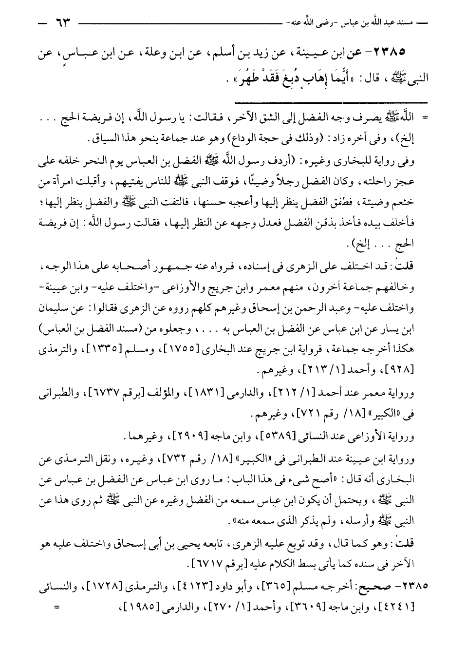 ٢٣٨٥ - صحيح: أخرجه مسلم [٣٦٥]، وأبو داود [٤١٢٣]، والترمذى [١٧٢٨]، والنسائى [٤٢٤١]، وابن ماجه [٣٦٠٩]، وأحمد [١/ ٢٧٠]، والدارمى [١٩٨٥]، =
