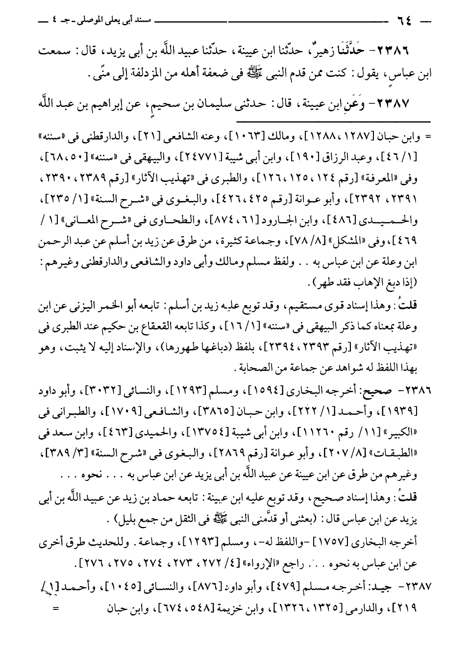 ٢٣٨٧ - جيد: أخرجه مسلم [٤٧٩]، وأبو داود: [٨٧٦]، والنسائى [١٠٤٥]، وأحمد [١/ ٢١٩]، والدارمى [١٣٢٥، ١٣٢٦]، وابن خزيمة [٥٤٨، ٦٧٤]، وابن حبان =