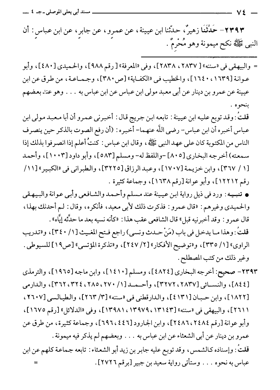 = والبيهقى في "سننه" [٢٨٣٧، ٢٨٣٨]، وفى "المعرفة" [رقم ٩٨٨]، والحميدى [٤٨٠]، وأبو عوانة [١٦٣٩، ١٦٤٠]، والخطيب في "الكفاية" [ص ٣٨٠]، وجماعة، من طرق عن ابن عيينة عن عمرو بن دينار عن أبى معبد مولى ابن عباس عن ابن عباس به ... وهو عند بعضهم بنحوه.