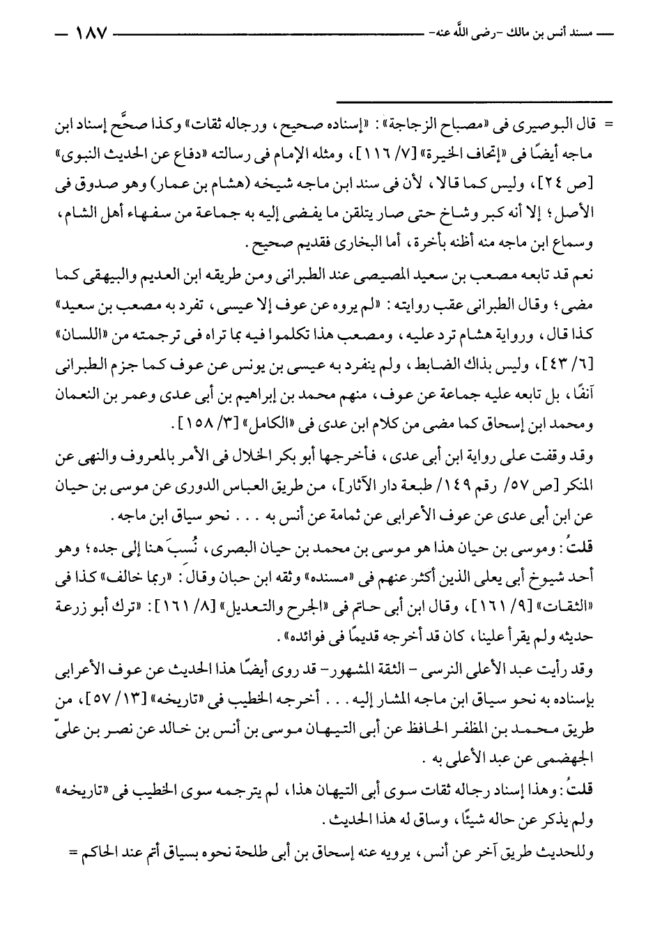 وقد وقفت على رواية ابن أبى عدى، فأخرجها أبو بكر الخلال في الأمر بالمعروف والنهى عن المنكر [ص ٥٧/ رقم ١٤٩/ طبعة دار الآثار]، من طريق العباس الدورى عن موسى بن حيان عن ابن أبى عدى عن عوف الأعرابى عن ثمامة عن أنس به ... نحو سياق ابن ماجه.