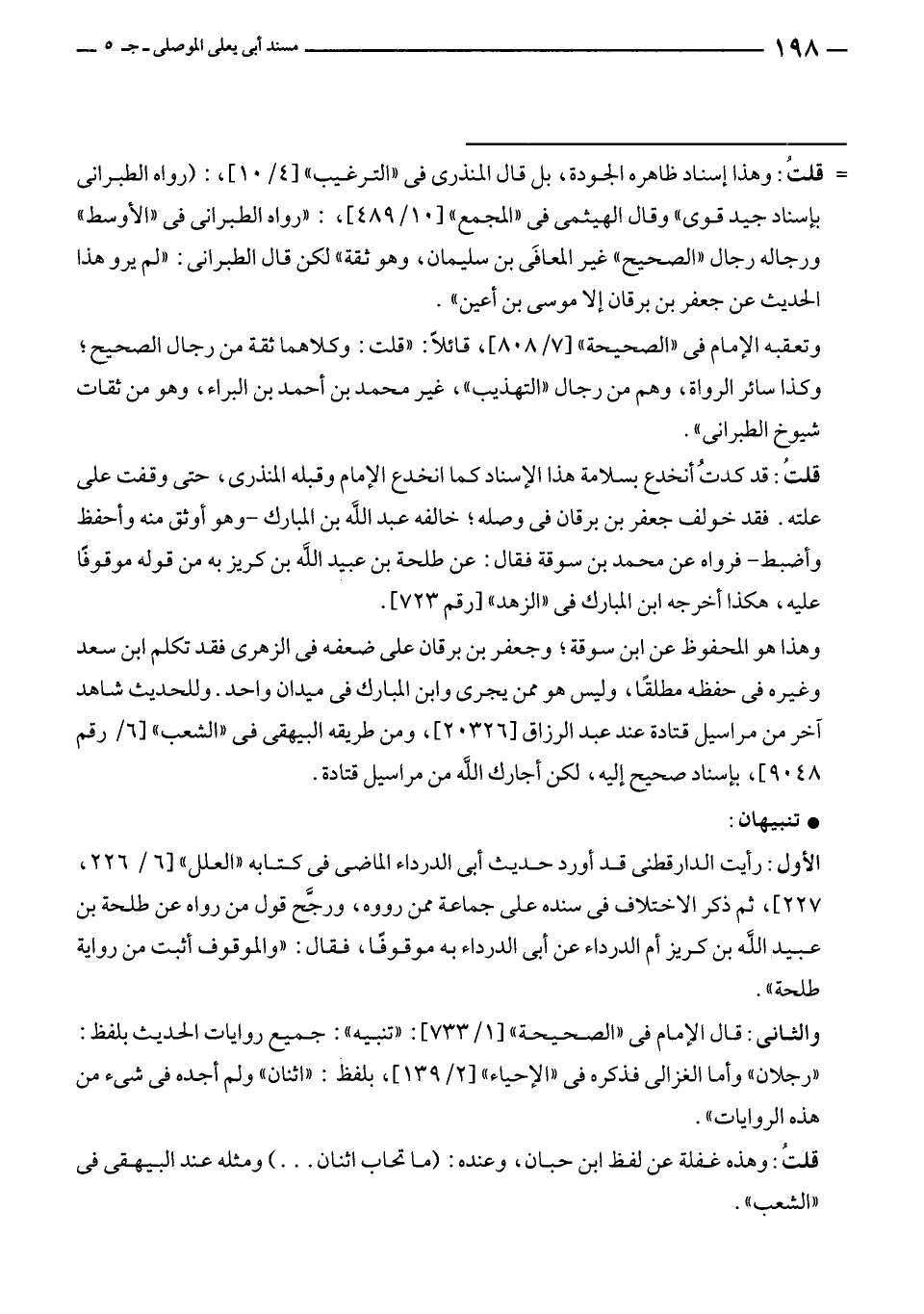 قلتُ: قد كدتُ أنخدع بسلامة هذا الإسناد كما انخدع الإمام وقبله المنذرى، حتى وقفت على علته. فقد خولف جعفر بن برقان في وصله؛ خالفه عبد الله بن المبارك - وهو أوثق منه وأحفظ وأضبط - فرواه عن محمد بن سوقة فقال: عن طلحة بن عبيد الله بن كريز به من قوله موقوفًا عليه، هكذا أخرجه ابن المبارك في "الزهد" [رقم ٧٢٣].
