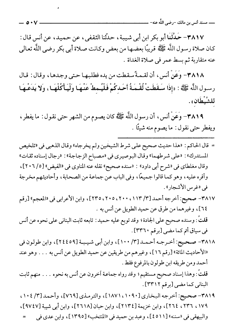 ٣٨١٨ - صحيح: أخرجه أحمد [٣/ ١٠٠]، وابن أبى شيبة [٢٤٤٥٩]، وابن طولون في "الأحاديث المائة" [رقم ١٦]، وغيرهم من طريقين عن حميد الطويل عن أنس به ... وهو عند أحمد ومن طريقه ابن طولون بالمرفوع فقط.