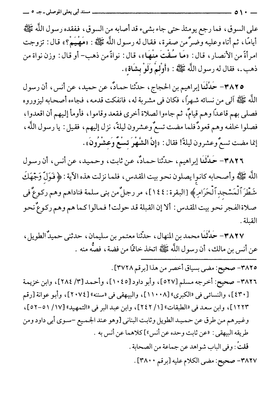 ٣٨٢٦ - صحيح: أخرجه مسلم [٥٢٧]، وأبو داود [١٠٤٥]، وأحمد [٣/ ٢٨٤]، وابن خزيمة [٤٣٠]، والنسائى في "الكبرى" [١١٠٠٨]، والبيهقى في "سننه" [٢٠٧٤]، وأبو عوانة [رقم ١٢٢٣]، وابن سعد في "الطبقات" [١/ ٢٤٢]، وابن عبد البر في "التمهيد" [١٧/ ٥١ - ٥٢]، وغيرهم من طرق عن حميد الطويل وثابمت البنانى [وهو عند الجميع - سوى أبى داود ومن طريقه البيهقى: "عن ثابت وحده عن أنس"]، كلاهما عن أنس به.