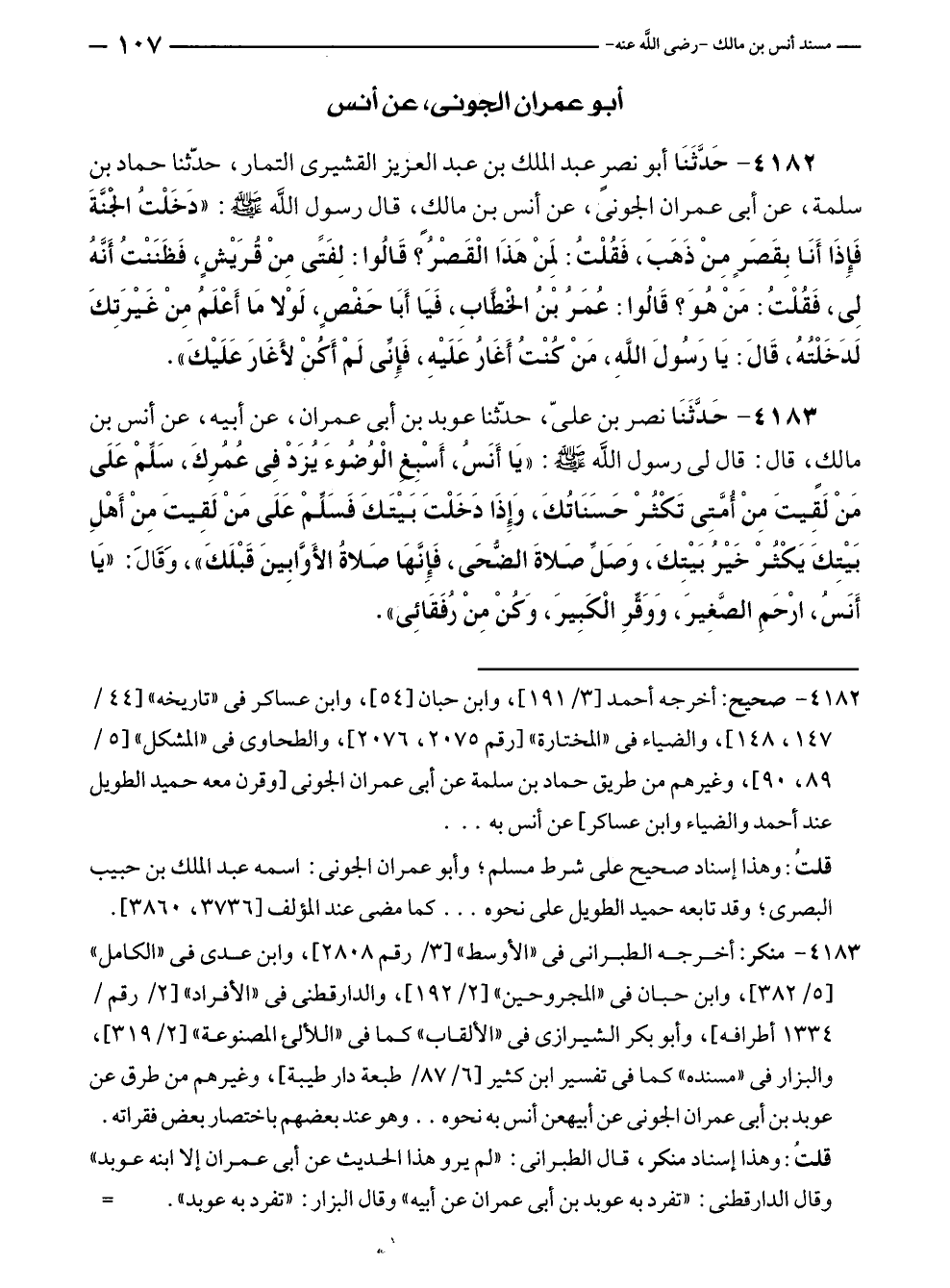 ٤١٨٢ - صحيح: أخرجه أحمد [٣/ ١٩١]، وابن حبان [٥٤]، وابن عساكر في "تاريخه" [٤٤/ ١٤٧، ١٤٨]، والضياء في "المختارة" [رقم ٢٠٧٥، ٢٠٧٦]، والطحاوي في "المشكل" [٥/ ٨٩، ٩٠]، وغيرهم من طريق حماد بن سلمة عن أبي عمران الجونى [وقرن معه حميد الطويل عند أحمد والضياء وابن عساكر] عن أنس به ...