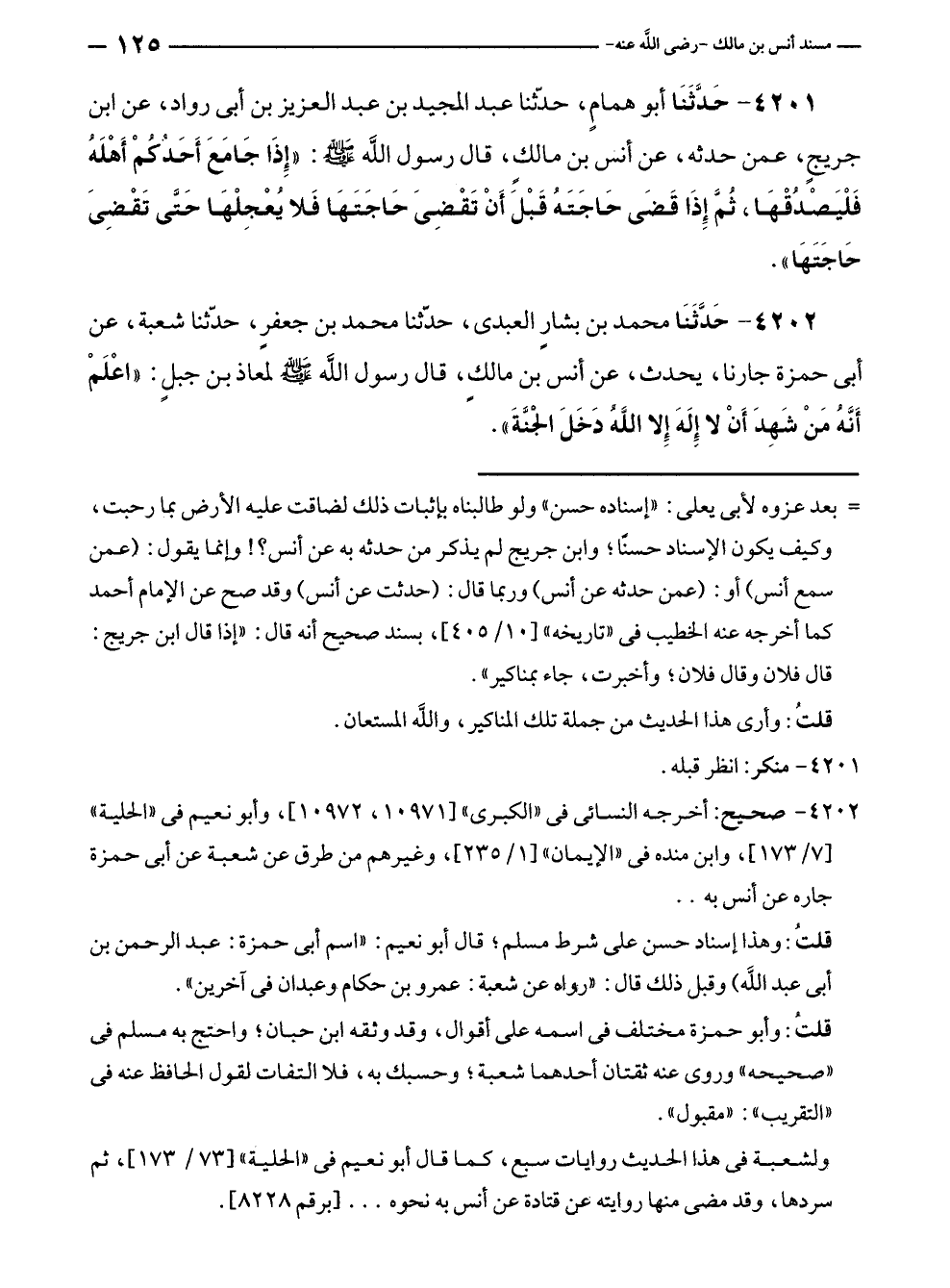 ٤٢٠٢ - صحيح: أخرجه النسائي في "الكبرى" [١٠٩٧١، ١٠٩٧٢]، وأبو نعيم في "الحلية" [٧/ ١٧٣]، وابن منده في "الإيمان" [١/ ٢٣٥]، وغيرهم من طرق عن شعبة عن أبى حمزة جاره عن أنس به ..