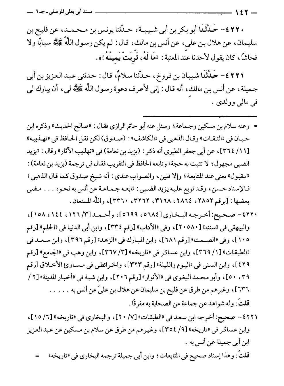 ٤٢٢١ - صحيح: أخرجه ابن سعد في "الطبقات" [٧/ ٢٠]، والبخارى في "تاريخه" [٦/ ١٥]، وابن عساكر في "تاريخه" [٩/ ٣٥٤]، وغيرهم من طرق عن سلام بن مسكين عن عبد العزيز بن أبى جميلة عن أنس به.