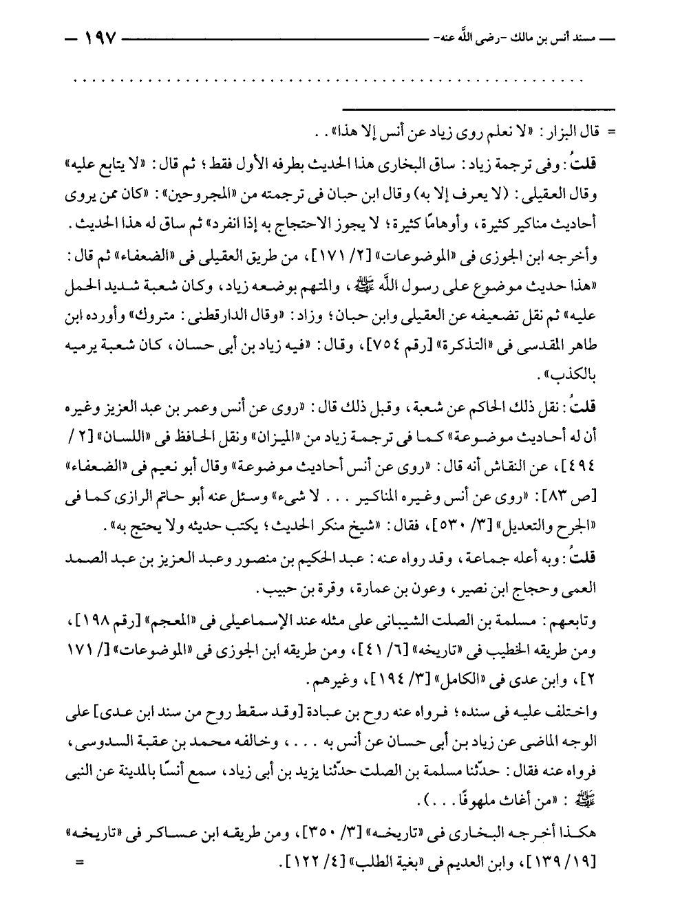 = قال البزار: "لا نعلم روى زياد عن أنس إلا هذا" ..