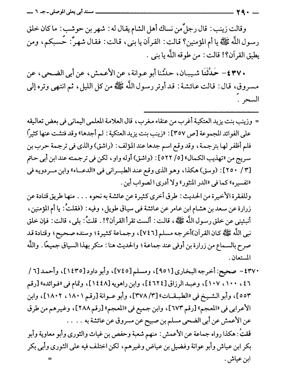 ٤٣٧٠ - صحيح: أخرجه البخارى [٩٥١]، ومسلم [٧٤٥]، وأبو داود [١٤٣٥]، وأحمد [٦/ ٤٦، ١٠٠، ١٠٧]، وعبد الرزاق [٤٦٢٤]، وابن راهويه [١٤٤٨]، وتمام في "فوائده" [رقم ٥٥٣]، وأبو الشيخ في "الطبقات" [٣/ ٣٧٨]، وأبو عوانة [رقم ١٨٠١، ١٨٠٢]، وابن الأعرابى في "المعجم" [رقم ٦٧٣]، وابن جميع في "المعجم" [رقم ٢٨٨]، وغيرهم من طرق عن الأعمش عن أبى الضحى مسلم بن صبيح عن مسروق عن عائشة به ....