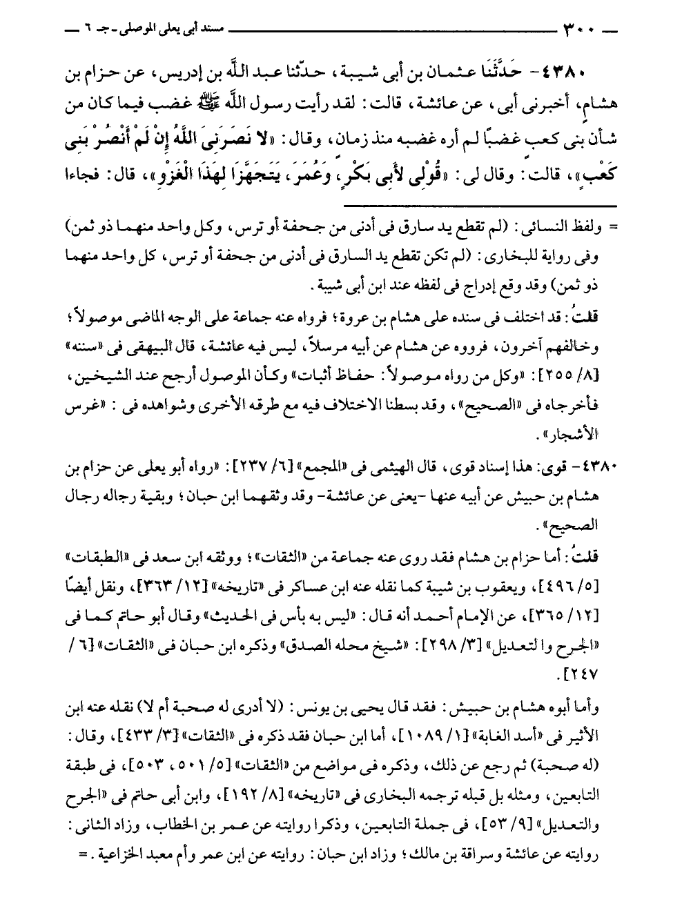 ٤٣٨٠ - قوى: هذا إسناد قوى، قال الهيثمى في "المجمع" [٦/ ٢٣٧]: "رواه أبو يعلى عن حزام. بن هشام بن حبيش عن أبيه عنها - يعنى عن عائشة - وقد وثقهما ابن حبان؛ وبقية رجاله رجال الصحيح".
