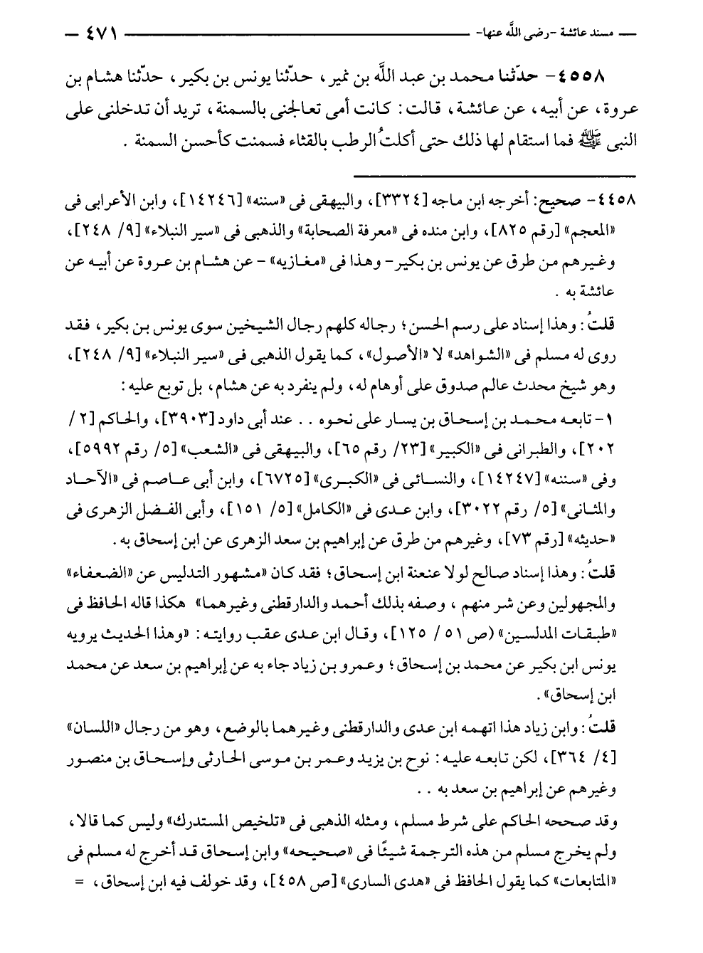 ٤٤٥٨ - صحيح: أخرجه ابن ماجه [٣٣٢٤]، والبيهقى في "سننه" [١٤٢٤٦]، وابن الأعرابى في "المعجم" [رقم ٨٢٥]، وابن منده في "معرفة الصحابة" والذهبى في "سير النبلاء" [٩/ ٢٤٨]، وغيرهم من طرق عن يونس بن بكير - وهذا في "مغازيه" - عن هشام بن عروة عن أبيه عن عائشة به.