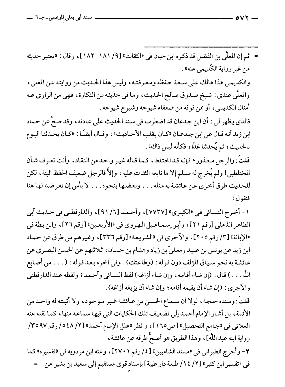 = ثم إن المعلَّى بن الفضل قد ذكره ابن حبان في "الثقات" [٩/ ١٨١ - ١٨٢]، وقال: "يعتبر حديثه من غير رواية الكُديمى عنه".