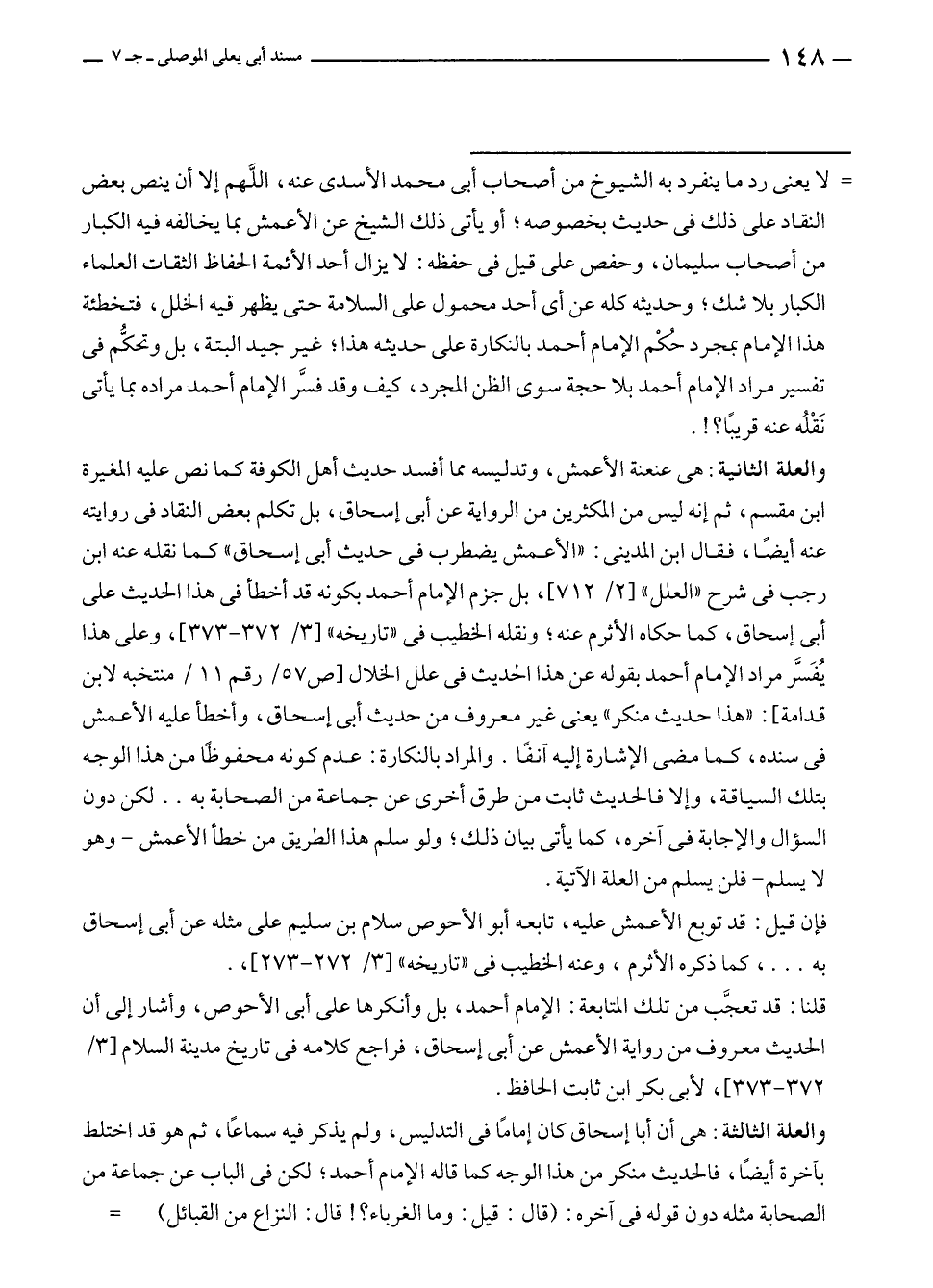 قلنا: قد تعجَّب من تلك المتابعة: الإمام أحمد، بل وأنكرها على أبى الأحوص، وأشار إلى أن الحديث معروف من رواية الأعمش عن أبى إسحاق، فراجع كلامه في تاريخ مدينة السلام [٣/ ٣٧٢ - ٣٧٣]، لأبى بكر بن ثابت الحافظ.