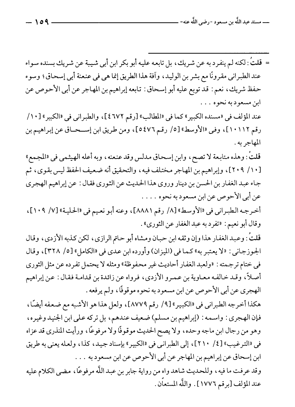 = قلتُ: لكنه لم ينفرد به عن شريك، بل تابعه عليه أبو بكر بن أبى شيبة عن شريك بسنده سواء عند الطبراني مقرونًا مع بشر بن الوليد، والله هذا الطريق إنما هي في عنعنة أبى إسحاق؛ وسوء حفظ شريك، نعم: قد توبع عليه أبو إسحاق: تابعه إبراهيم بن المهاجر عن أبى الأحوص عن ابن مسعود به نحوه ...