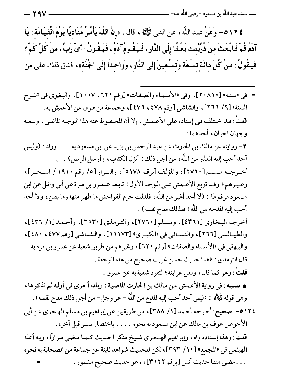 ٥١٢٤ - صحيح: أخرجه أحمد [١/ ٣٨٨]، من طريقين عن إبراهيم بن مسلم الهجري عن أبي الأحوص عوف بن مالك عن ابن مسعود به نحوه .... باختصار يسير قبل آخره.
