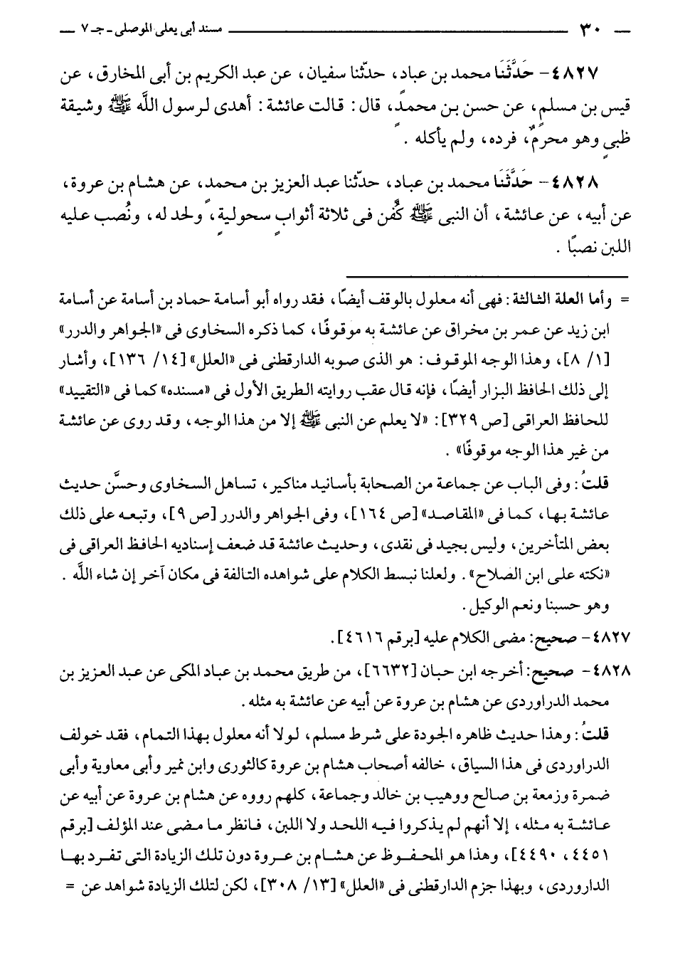 ٤٨٢٨ - صحيح: أخرجه ابن حبان [٦٦٣٢]، من طريق محمد بن عباد المكى عن عبد العزيز بن محمد الدراوردى عن هشام بن عروة عن أبيه عن عائشة به مثله.