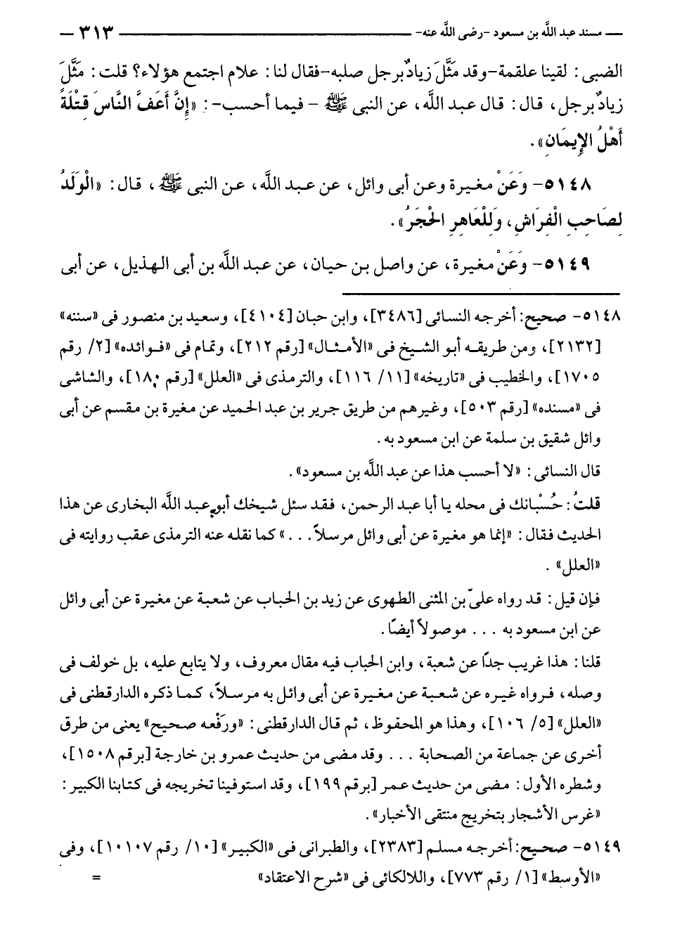 ٥١٤٨ - صحيح: أخرجه النسائي [٣٤٨٦]، وابن حبان [٤١٠٤]، وسعيد بن منصور في "سننه" [٢١٣٢]، ومن طريقه أبو الشيخ في "الأمثال" [رقم ٢١٢]، وتمام في "فوائده" [٢/ رقم ١٧٠٥]، والخطيب في "تاريخه" [١١/ ١١٦]، والترمذي في "العلل" [رقم ١٨٠]، والشاشى في "مسنده" [رقم ٥٠٣]، وغيرهم من طريق جرير بن عبد الحميد عن مغيرة بن مقسم عن أبي وائل شقيق بن سلمة عن ابن مسعود به.
