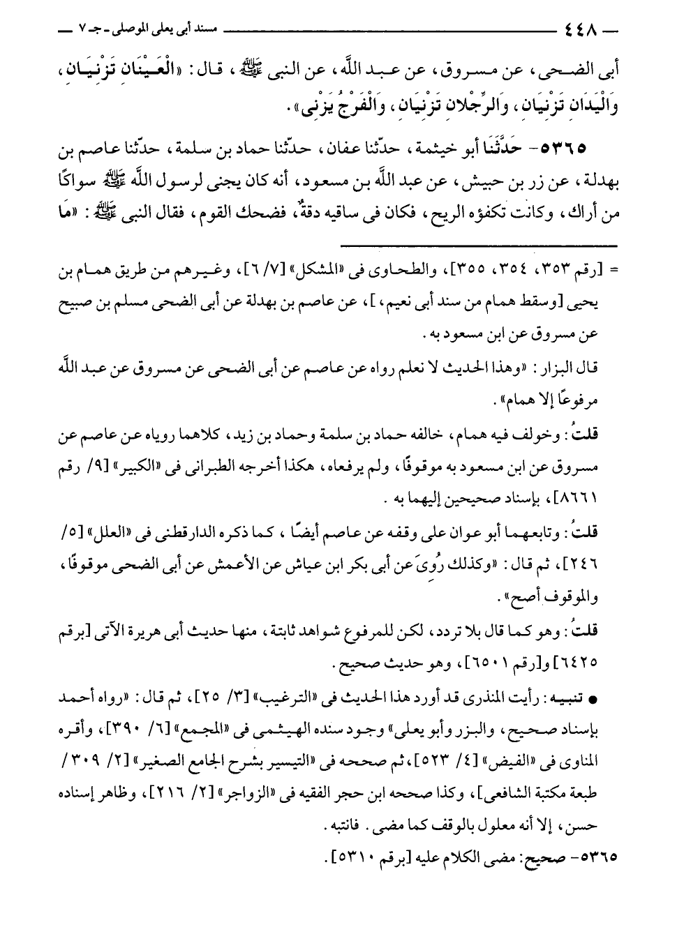= [رقم ٣٥٣، ٣٥٤، ٣٥٥]، والطحاوى في "المشكل" [٧/ ٦]، وغيرهم من طريق همام بن يحيى [وسقط همام من سند أبى نعيم،]، عن عاصم بن بهدلة عن أبى الضحى مسلم بن صبيح عن مسروق عن ابن مسعود به.