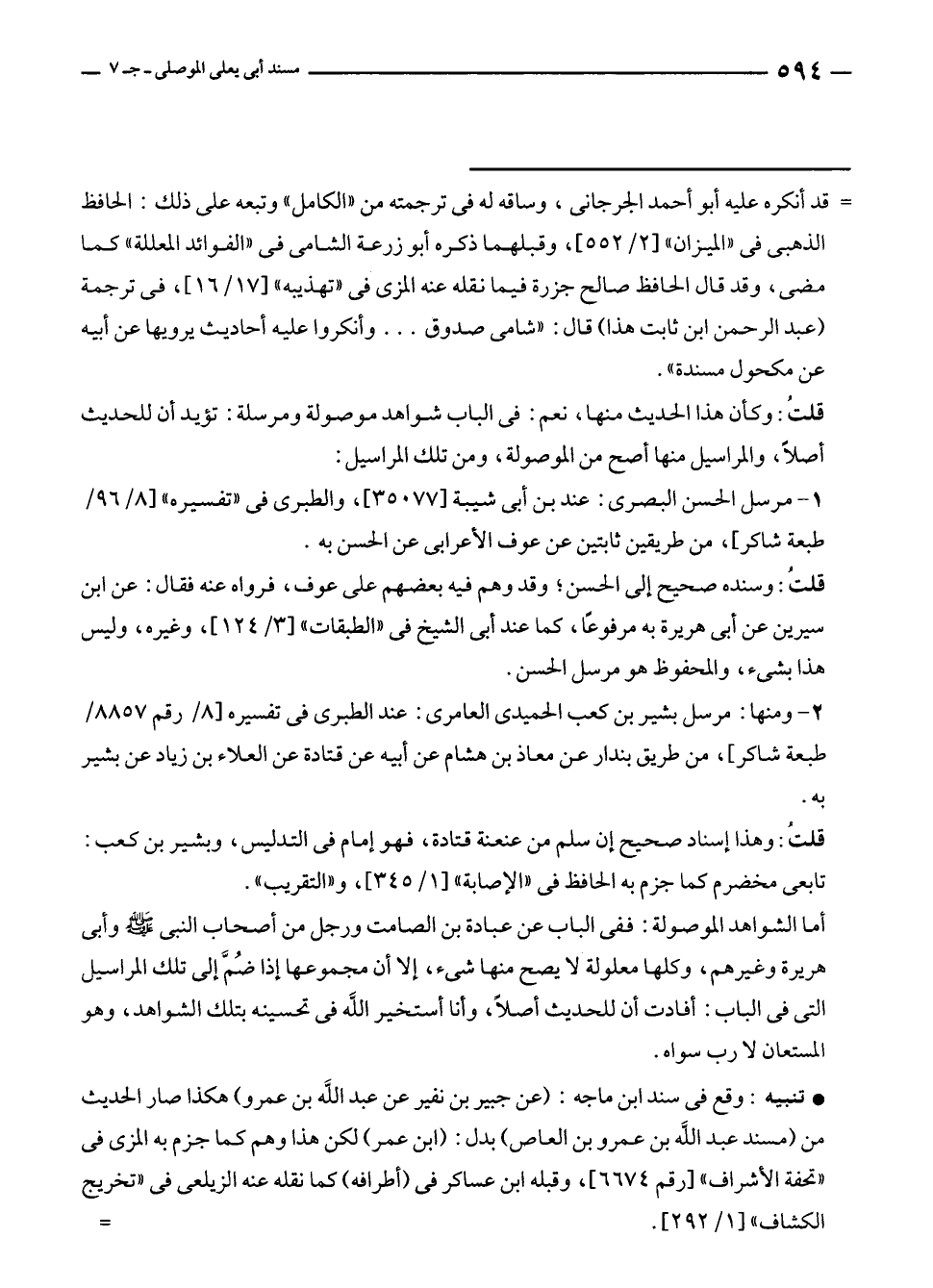 = قد أنكره عليه أبو أحمد الجرجانى، وساقه له في ترجمته من "الكامل" وتبعه على ذلك: الحافظ الذهبي في "الميزان" [٢/ ٥٥٢]، وقبلهما ذكره أبو زرعة الشامى في "الفوائد المعللة" كما مضى، وقد قال الحافظ صالح جزرة فيما نقله عنه المزي في "تهذيبه" [١٧/ ١٦]، في ترجمة (عبد الرحمن بن ثابت هذا) قال: "شامى صدوق ... وأنكروا عليه أحاديث يرويها عن أبيه عن مكحول مسندة".