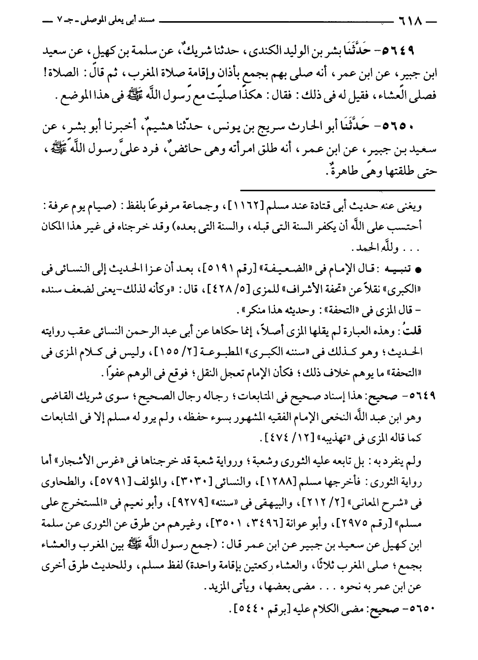 ٥٦٤٩ - صحيح: هذا إسناد صحيح في المتابعات؛ رجاله رجال الصحيح؛ سوى شريك القاضى وهو ابن عبد الله النخعي الإمام الفقيه المشهور بسوء حفظه، ولم يرو له مسلم إلا في المتابعات كما قاله المزي في "تهذيبه" [١٢/ ٤٧٤].