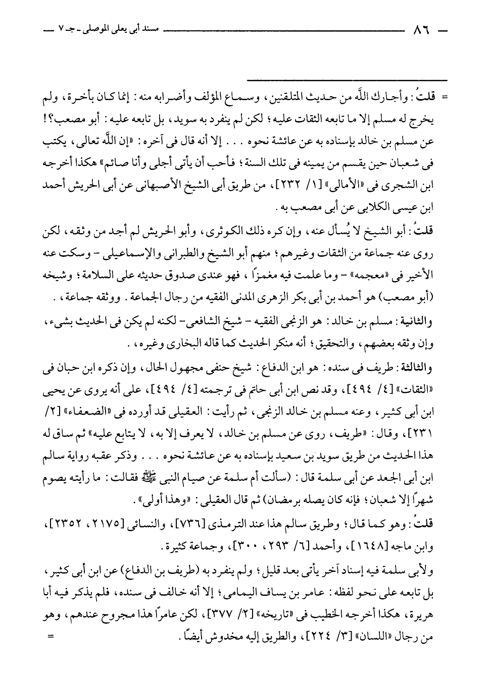 = قلتُ: وأجارك الله من حديث المتلقنين، وسماع المؤلف وأضرابه منه: إنما كان بأخرة، ولم يخرج له مسلم إلا ما تابعه الثقات عليه؛ لكن لم ينفرد به سويد، بل تابعه عليه: أبو مصعب؟! عن مسلم بن خالد بإسناده به عن عائشة نحوه ... إلا أنه قال في آخره: "إن الله تعالى، يكتب في شعبان حين يقسم من يمينه في تلك السنة؛ فأحب أن يأتى أجلى وأنا صائم" هكذا أخرجه ابن الشجرى في "الأمالى" [١/ ٢٣٢]، من طريق أبى الشيخ الأصبهانى عن أبى الحريش أحمد بن عيسى الكلابى عن أبى مصعب به.