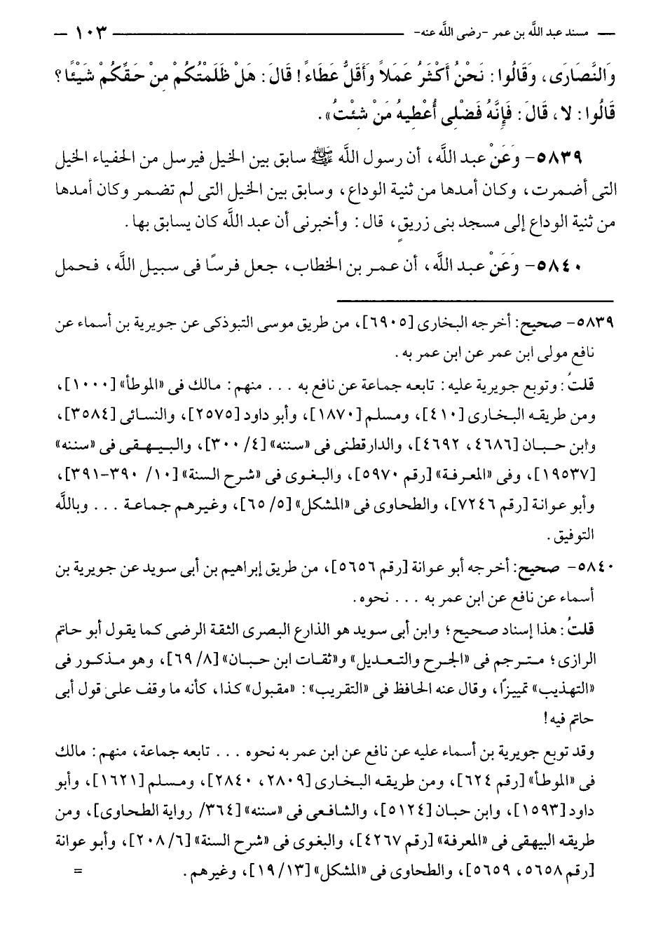 ٥٨٤٠ - صحيح: أخرجه أبو عوانة [رقم ٥٦٥٦]، من طريق إبراهيم بن أبى سويد عن جويرية بن أسماء عن نافع عن ابن عمر به ... نحوه.