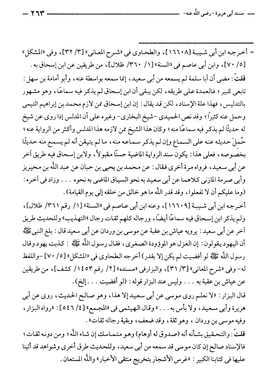 قلتُ: والتحقيق بشأنه أنه (صدوق له أوهام) وهو متماسك إن شاء الله؛ ومن دونه ثقات؛ فالإسناد صالح إن كان موسى قد سمعه من أبى سعيد، وللحديث طرق أخرى وشواهد قد أتينا عليها في كتابنا الكبير: "غرس الأشجار بتخريج منتقى الأخبار" والله المستعان.