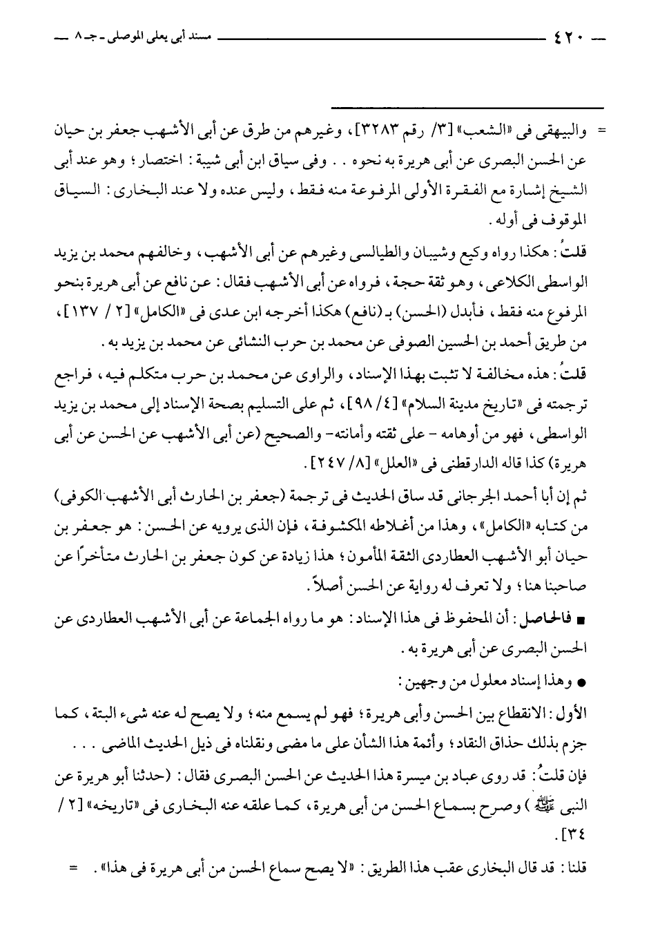 * فالحاصل: أن المحفوظ في هذا الإسناد: هو ما رواه الجماعة عن أبى الأشهب العطاردى عن الحسن البصرى عن أبى هريرة به.