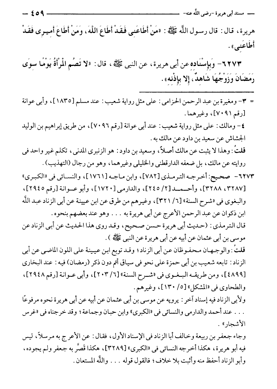 ٦٢٧٣ - صحيح: أخرجه الترمذى [٧٨٢]، وابن ماجه [١٧٦١]، والنسائى في "الكبرى" [٣٢٨٧، ٣٢٨٨]، وأحمد [٢/ ٢٤٥]، والدارمى [١٧٢٠]، وأبو عوانة [رقم ٢٩٤٥]، والبغوى في "شرح السنة" [٦/ ٣٢١]، وغيرهم من طرق عن ابن عيينة عن أبي الزناد عبد الله بن ذكوان عن عبد الرحمن الأعرج عن أبي هريرة به ... وهو عند بعضهم بنحوه.