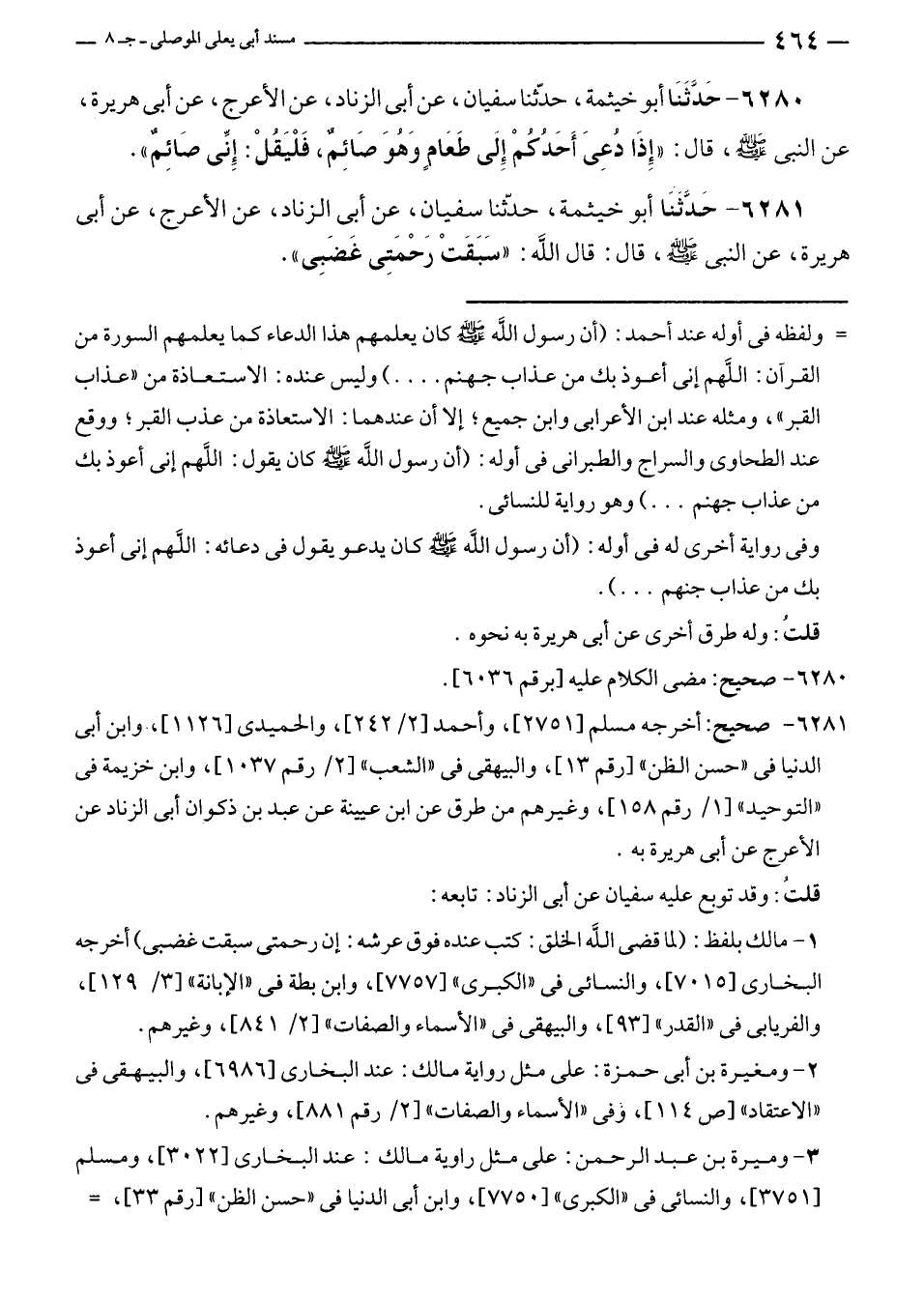 ٦٢٨١ - صحيح: أخرجه مسلم [٢٧٥١]، وأحمد [٢/ ٢٤٢]، والحميدى [١١٢٦]،. وابن أبي الدنيا في "حسن الظن" [رقم ١٣]، والبيهقى في "الشعب" [٢/ رقم ١٠٣٧]، وابن خزيمة في "التوحيد" [١/ رقم ١٥٨]، وغيرهم من طرق عن ابن عيينة عن عبد بن ذكوان أبي الزناد عن الأعرج عن أبي هريرة به.