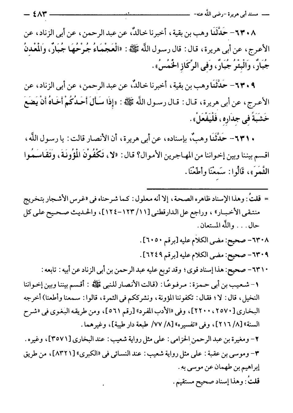 ٦٣١٠ - صحيح: هذا إسناد قوى؛ وقد توبع عليه عبد الرحمن بن أبى الزناد عن أبيه: تابعه: