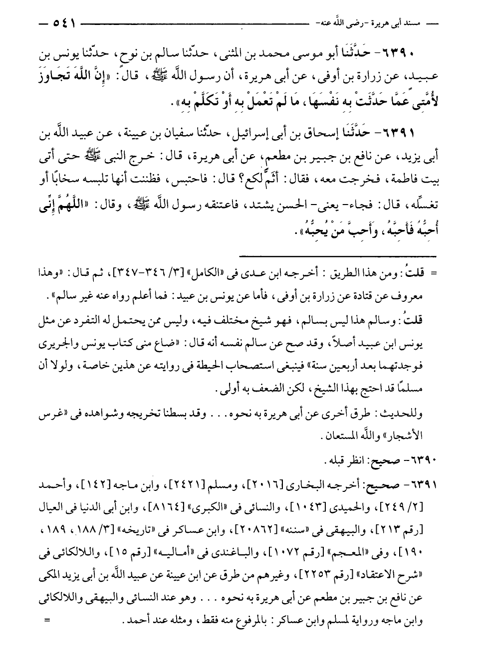 ٦٣٩٠ - حَدَّثَنَا أبو موسى محمد بن المثنى، حدّثنا سالم بن نوحٍ، حدّثنا يونس بن عبيدٍ، عن زرارة بن أوفى، عن أبى هريرة، أن رسول الله - صلى الله عليه وسلم -، قال: "إِنَّ اللهَ تَجَاوَزَ لأُمَّتِى عَمَّا حَدَّثَتْ بِهِ نَفْسَهَا، مَا لَمْ تَعْمَلْ بِهِ أَوْ تَكَلَّمْ بِهِ".