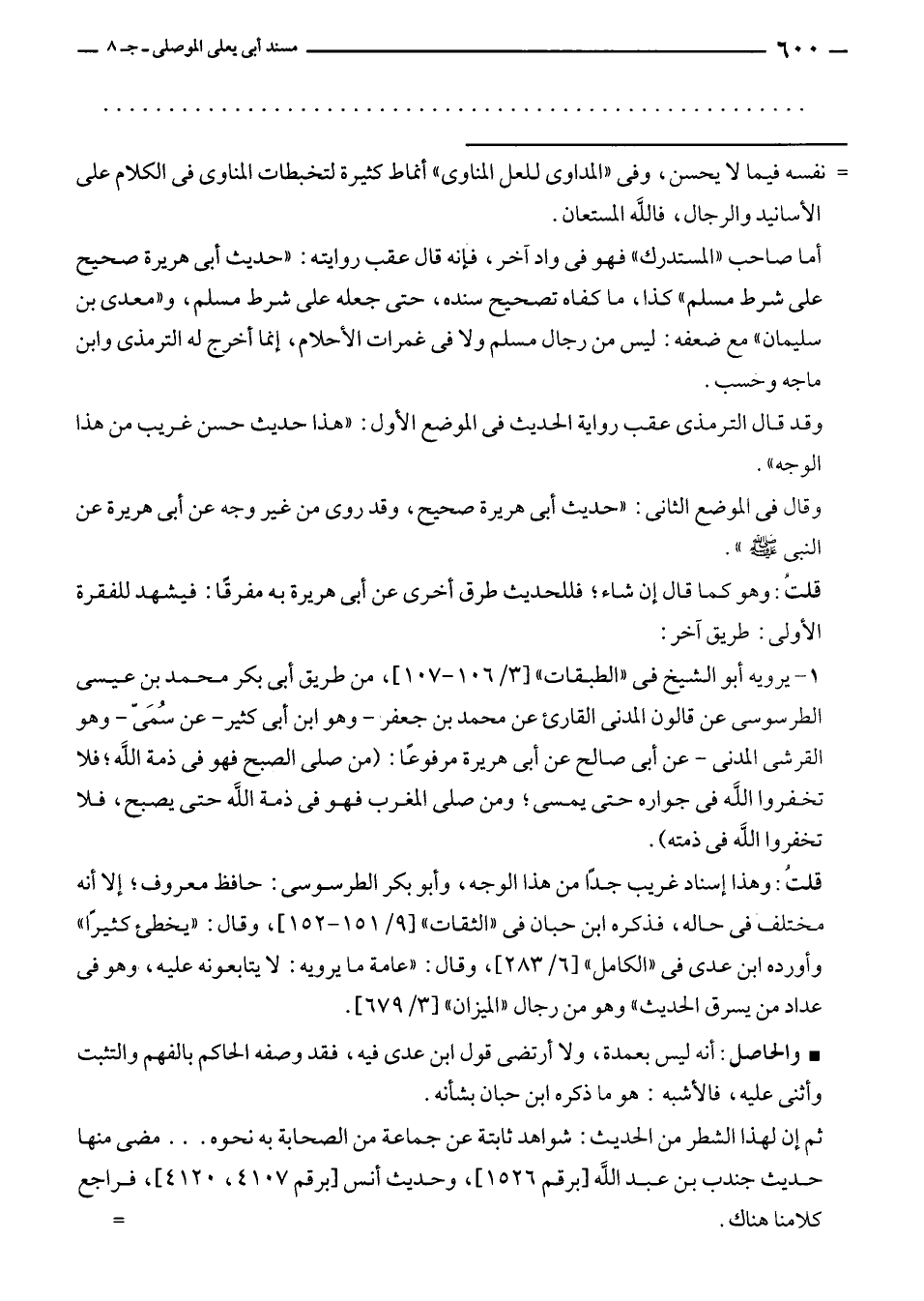 = نفسه فيما لا يحسن، وفى "المداوى للعل المناوى" أنماط كثيرة لتخبطات المناوى في الكلام على الأسانيد والرجال، فالله المستعان.