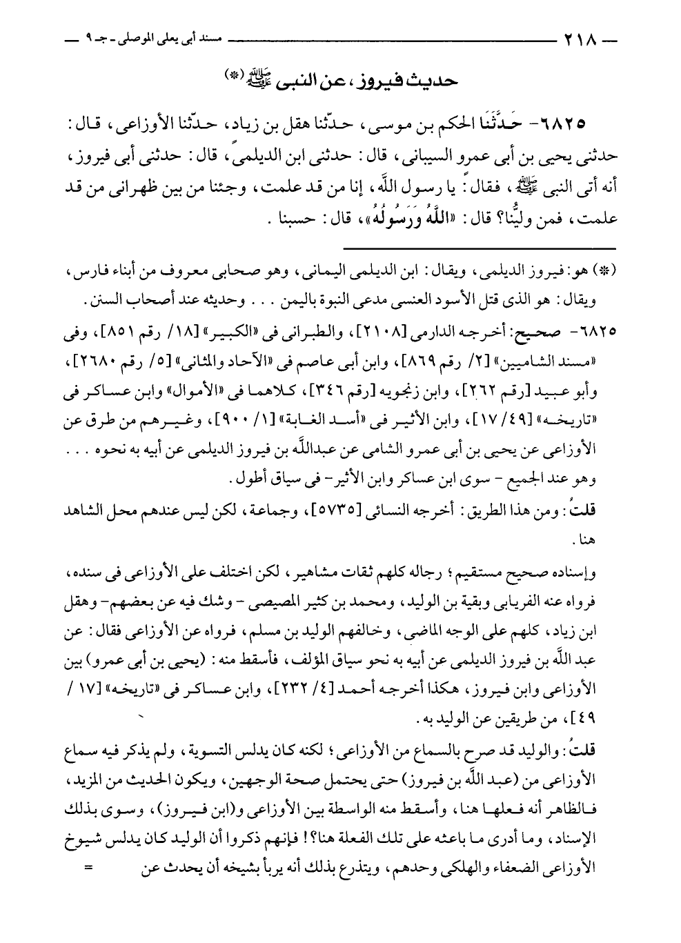 (*) هو: فيروز الديلمى، ويقال: ابن الديلمى اليمانى، وهو صحابى معروف من أبناء فارس، ويقال: هو الذي قتل الأسود العنسى مدعى النبوة باليمن ... وحديثه عند أصحاب السنن.