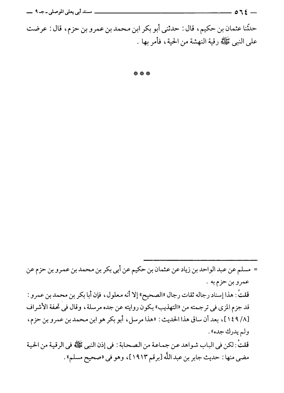 = مسلم عن عبد الواحد بن زياد عن عثمان بن حكيم عن أبى بكر بن محمد بن عمرو بن حزم عن عمرو بن حزم به.