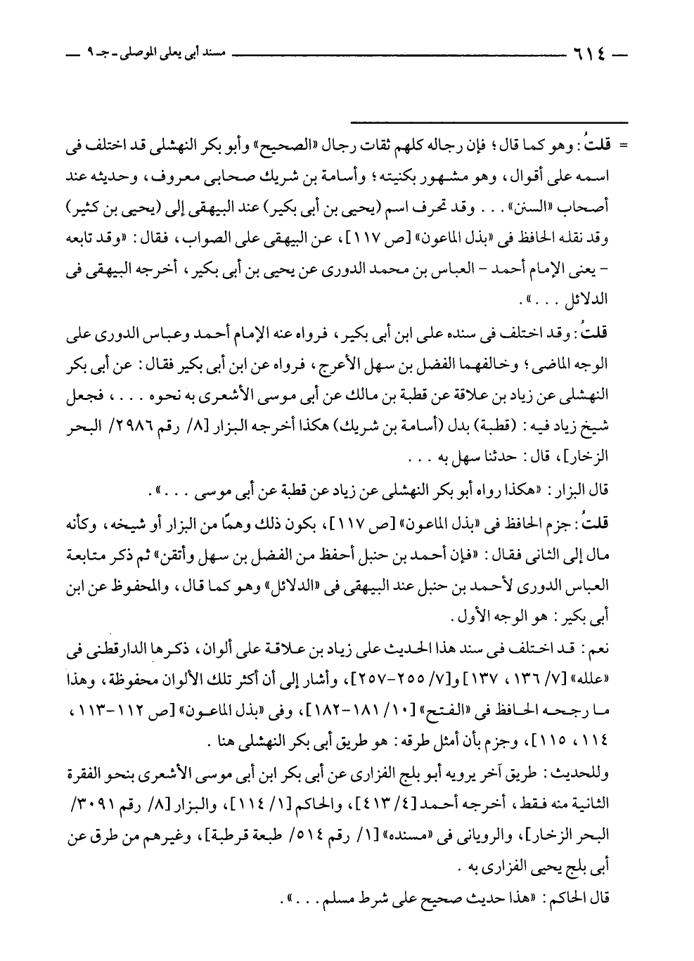 = قلتُ: وهو كما قال؛ فإن رجاله كلهم ثقات رجال "الصحيح" وأبو بكر النهشلي قد اختلف في اسمه على أقوال، وهو مشهور بكنيته؛ وأسامة بن شريك صحابي معروف، وحديثه عند أصحاب "السنن" ... وقد تحرف اسم (يحيى بن أبي بكير) عند البيهقي إلى (يحيى بن كثير) وقد نقله الحافظ في "بذل الماعون" [ص ١١٧]، عن البيهقي على الصواب، فقال: "وقد تابعه - يعني الإمام أحمد - العباس بن محمد الدورى عن يحيى بن أبي بكير، أخرجه البيهقي في الدلائل ... ".