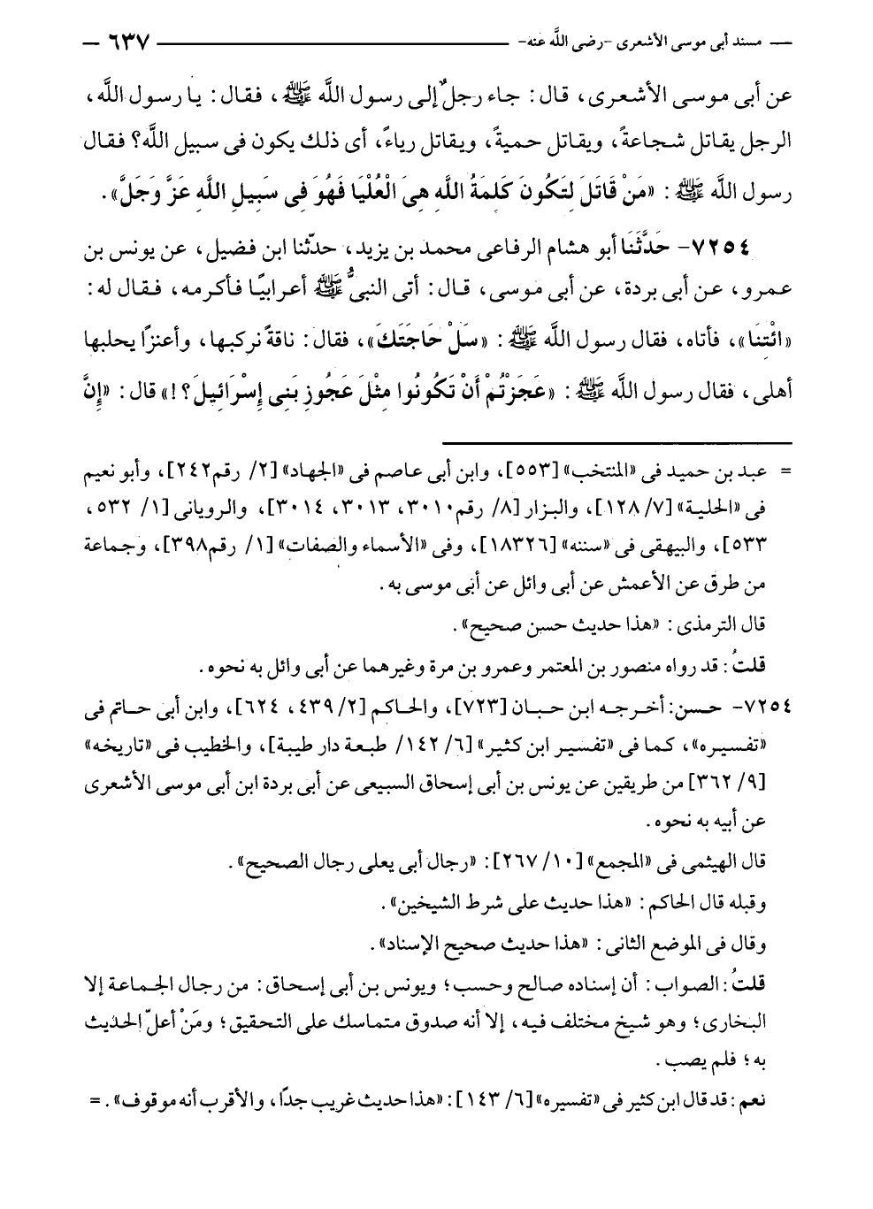 ٧٢٥٤ - حسن: أخرجه ابن حبان [٧٢٣]، والحاكم [٢/ ٤٣٩، ٦٢٤]، وابن أبي حاتم في "تفسيره"، كما في "تفسير ابن كثير" [٦/ ١٤٢/ طبعة دار طيبة]، والخطيب في "تاريخه" [٩/ ٣٦٢] من طريقين عن يونس بن أبي إسحاق السبيعي عن أبي بردة بن أبي موسى الأشعري عن أبيه به نحوه.