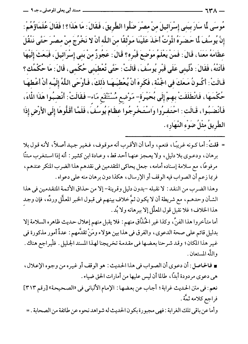 = قلتُ: أما كونه غريبًا، فنعم، وأما أن الأقرب أنه موقوف، فغير جيد أصلًا، لأنه قول بلا برهان، ودعوى بلا دليل، ولا يعجز عنها أحد قط، وعادة ابن كثير: أنه إذا استغرب متنًا مرفوعًا، مع سلامة إسناده أمامه، جعل يحاكى المتقدمين في نقدهم هذا الضرب المنكر عندهم، فربما زعم أن الصواب فيه الوقف أو الإرسال، هكذا دون برهان منه على دعواه.